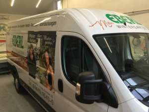 Immer und überall mit Ihnen im Einsatz: Fahrzeugwerbung. Um die mobile Werbebotschaft ganz nach Ihren Vorstellungen zu gestalten, realisieren wir von der Beschriftung mit einzelnen Schriftzügen über die Fahrzeugvollfolierung bis zur Kombination aus Beschriftung und Folierung jegliche Variante.